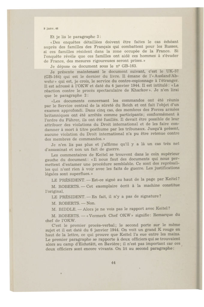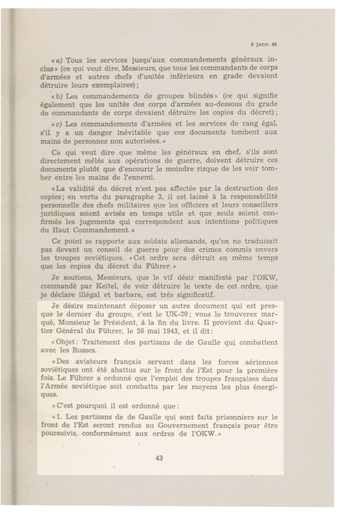 Extrait des minutes du Procès de Nuremberg traitant du “Normandie-Niémen”.
